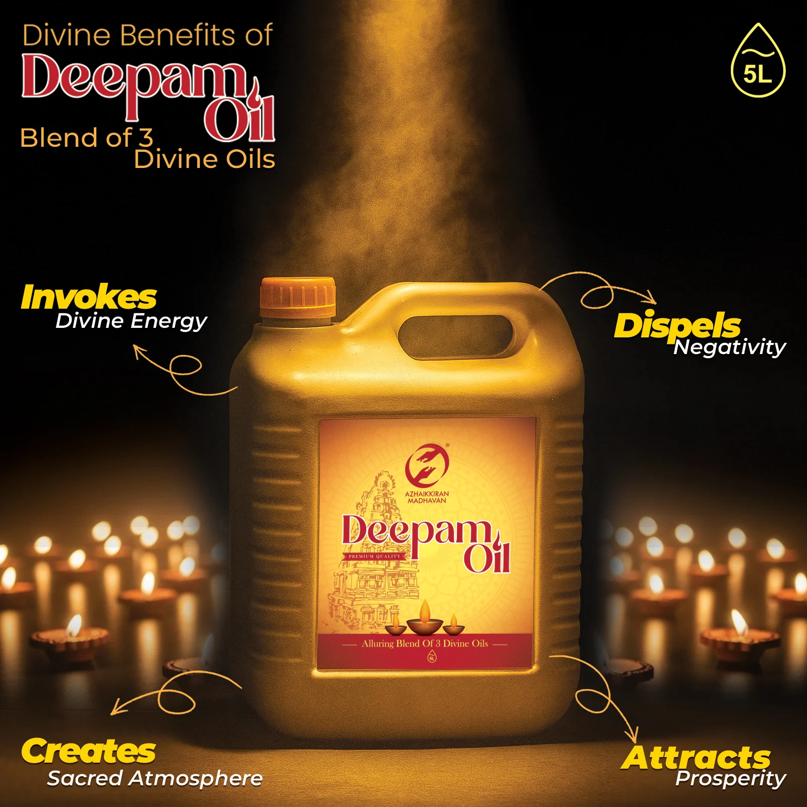 🌿 Sesame Oil: Enhances the flame’s brightness, symbolizes longevity, and promotes positive energy.