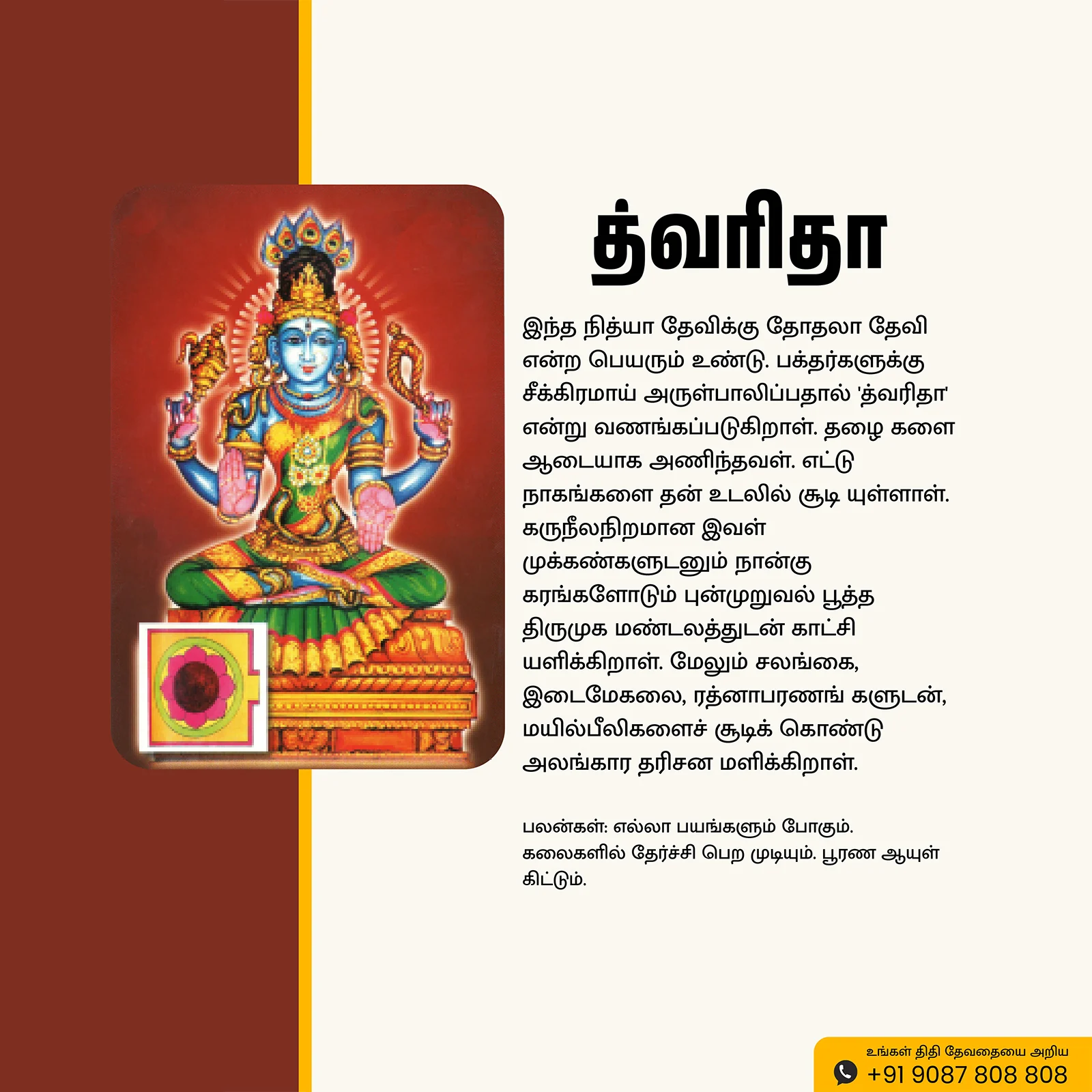 Shri Tvarita | Thithi Devathai | Energized Powerful Photo Frame | 6×8 inch