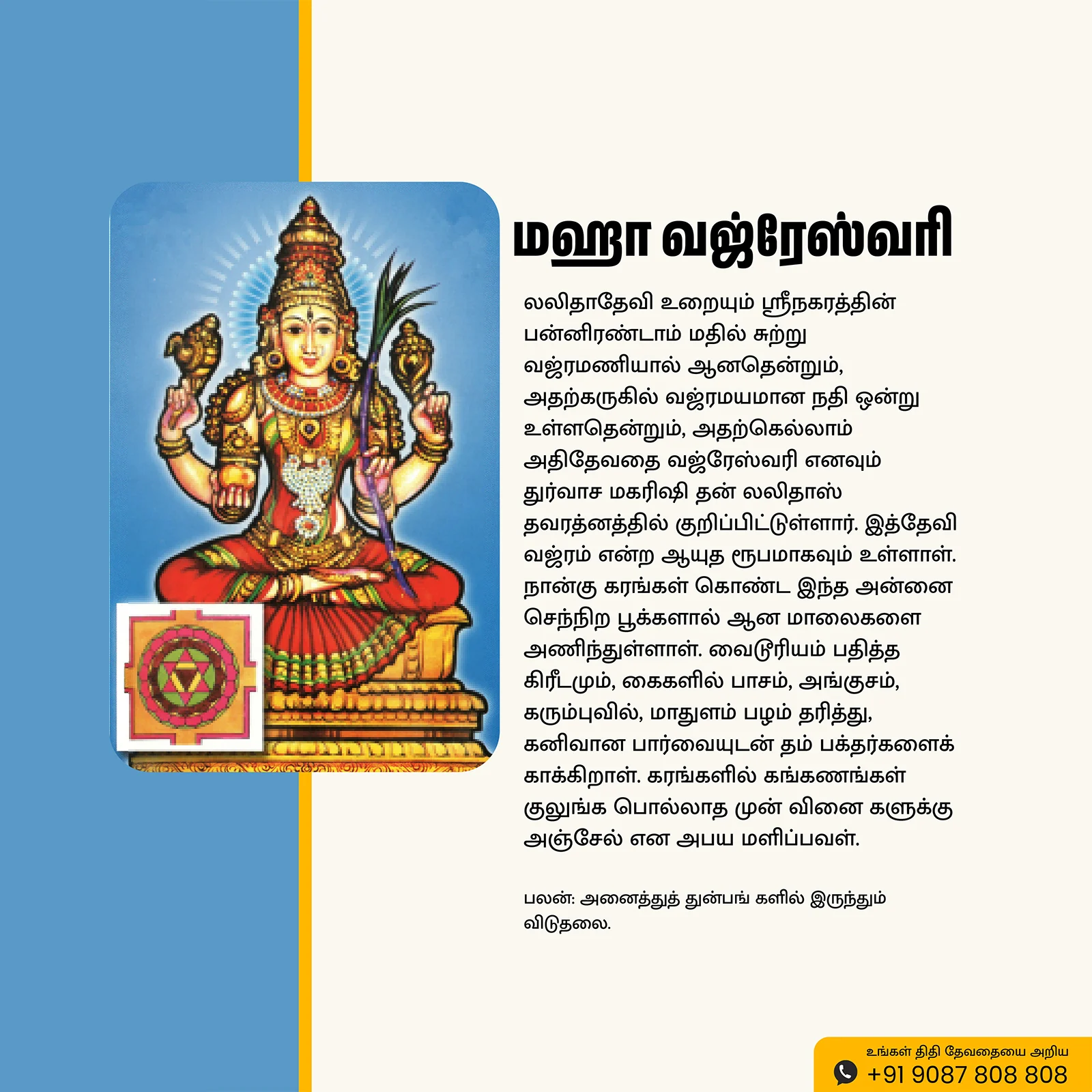 Sri Maha Vajreshwari | Thithi Devathai | Energized Powerful Photo Frame | 6×8 inch